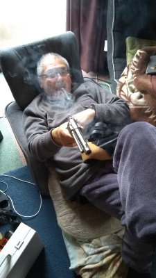 それでもエアガンなら、手軽にお座敷射撃が楽しめます。寝っ転がって的を狙ってるだけですから(ニコチンも嫌なので、写真の煙草は香料入りの電子式です)。更には銃を集める楽しみもありますから、それで私のようなオタクに向いているんでしょう。無闇に振り回さないで眺めているだけなら、日本刀だって私が運転する自動車より遥かに安全なのです。